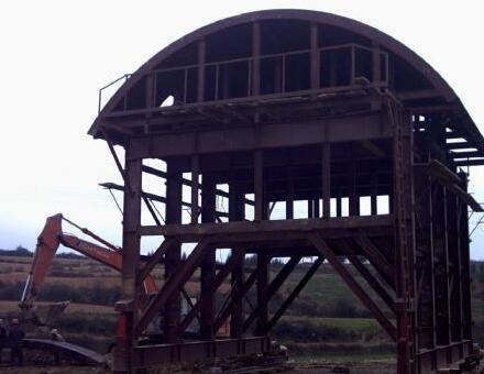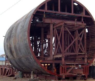 西安襯砌臺車主要用于中長隧道施工中,對施工進度、砼表面質(zhì)量要求較高。此類襯砌臺車設計為整體鋼模板、液壓油缸脫立模,施工中靠絲桿千斤支撐,電動減速機自動行走或油缸步進式自動行走,全部采用砼輸送泵車灌注。大部分襯砌臺車為該類臺車。設計該類襯砌臺車時,在滿足通過凈空要求的情況下,應考慮門架內(nèi)側(cè)斜支撐下部安裝位置,盡可能靠近立柱下部,使之受力最好。門架橫梁應足夠高,常規(guī)鐵路隧道不小于400mm,公路隧道不小于5500mm。模板端面與門架間的調(diào)整最小距離不小于250mm,否則將造成前后襯砌段搭接困難。