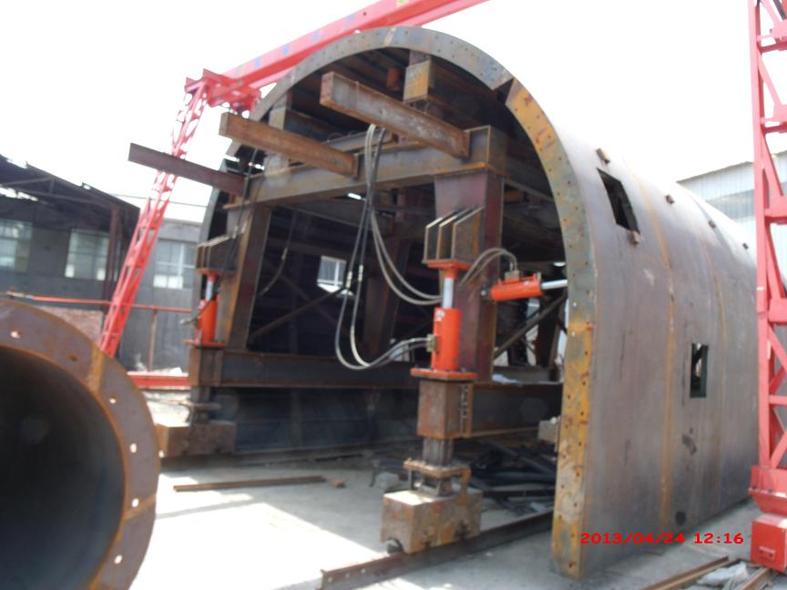 (3)操作液壓系統,使側向油缸活塞桿伸出并達到標準襯砌斷面,然后人工扳動側向支撐絲桿千斤,使之達到側向油缸支撐位置并旋緊;